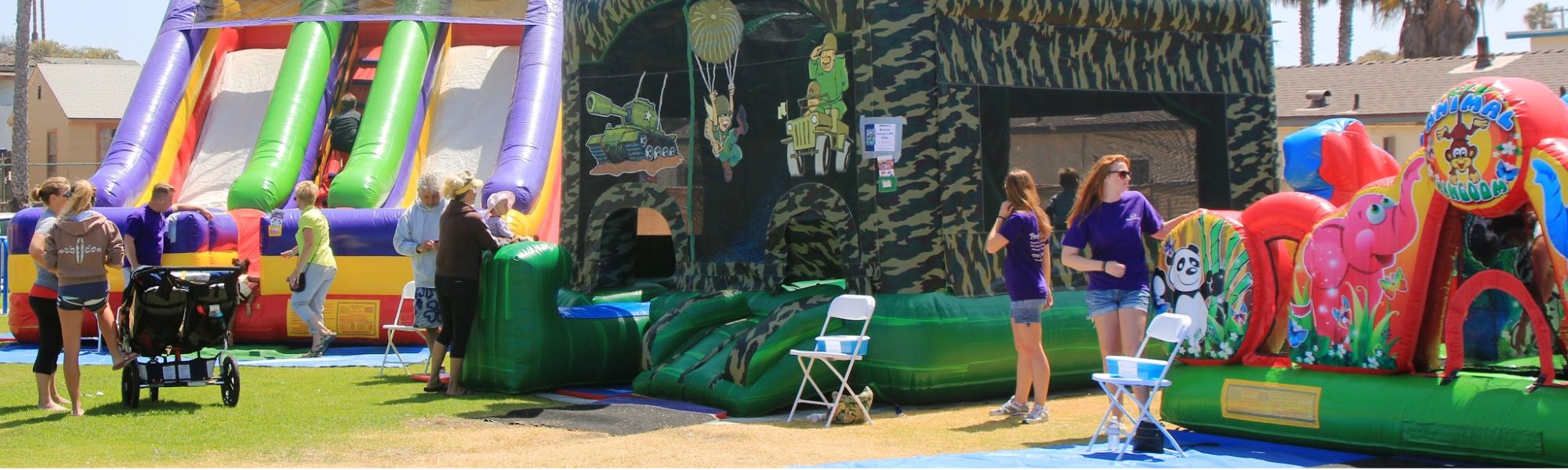 Obstacle courses create visual impact — long, colorful, and dynamic. Their presence alone signals “big event,” making them ideal for plazas, parks, school fields, and corporate lots across San Diego. Browse options here.